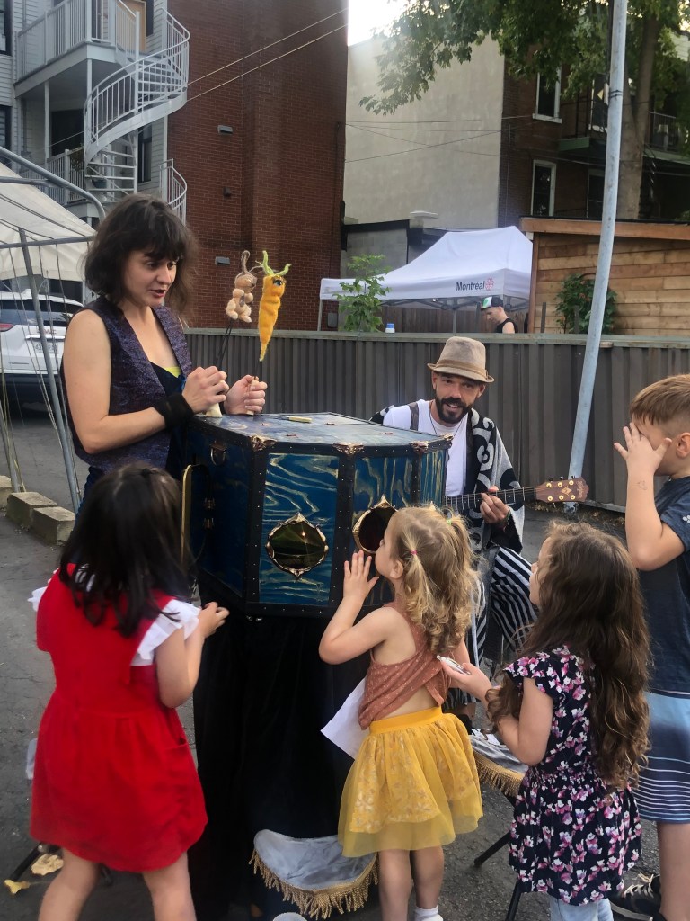 Bonne Fortune – version – Mini-théâtre est une performance immersive parfaitement adaptée pour transformer l’espace public en un lieu magique et poétique. À travers une marionnette géante diseuse de bonne aventure et des interactions spontanées avec le public, ce spectacle tisse un lien unique avec les spectateurs, les transportant dans un univers surréaliste où l’impossible prend vie.